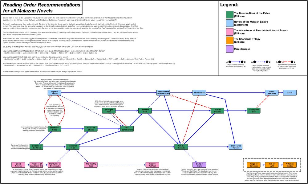 http://malazan.wikia.com/wiki/Suggested_reading_order#Ultimate_reading_order_suggested_by_members_of_the_Malazan_Empire_Forum